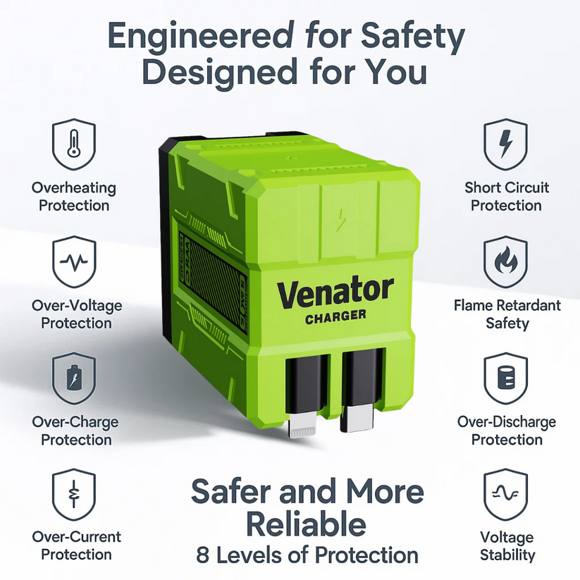 Sécurité intelligente → protections contre surchauffe, surtension et court-circuit