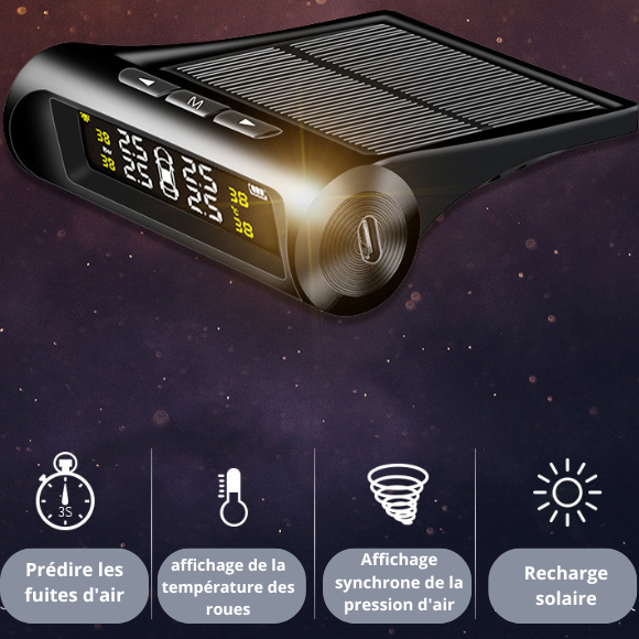 Système d'alarme de pression des pneus de voiture à énergie solaire, alerte automatique de température de sécurité